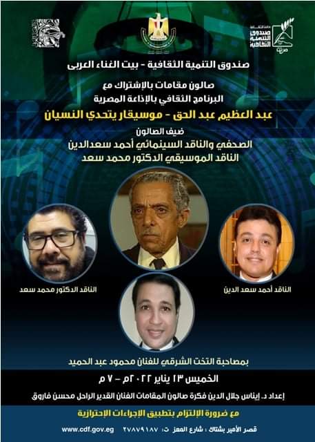 عبد العظيم عبد الحق موسيقار يتحدي النسيان ببيت الغناء العربي .. الخميس