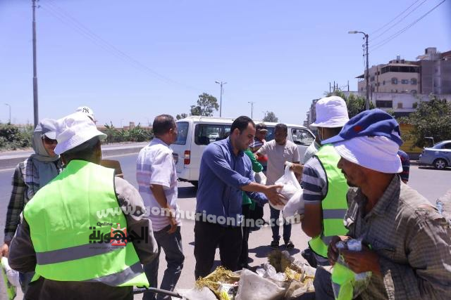 رئيس مدينه مصيف بلطيم يوزع العصائر والمياه على عمال النظافة
