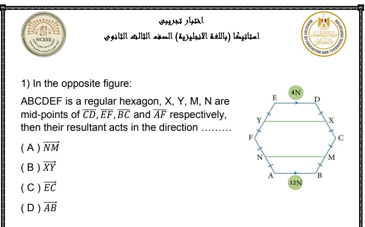 النماذج الاسترشادية لامتحانات الثانوية العامة 2023 في الاستاتيكا