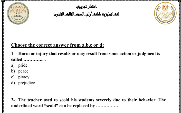 النماذج الاسترشادية للوزارة في الدراسات للشهادة الإعدادية