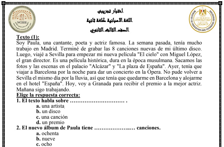 النماذج الاسترشادية للثانوية العامة 2023 في اللغة الاسبانية