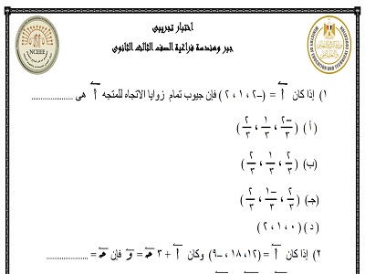 النماذج الاسترشادية في الجبر والهندسة الفراغية 2023