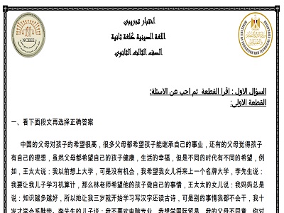 ننشر النماذج الاسترشادية في اللغة الصينية للثانوية العامة 2023