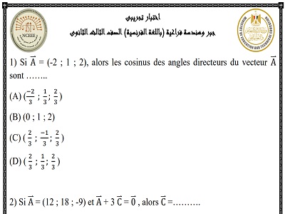 النماذج الاسترشادية في الجبر والهندسة الفراغية بالفرنسية 2023