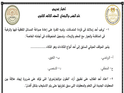 النماذج الاسترشادية للوزارة علوم للشهادة الإعدادية الترم الأول
