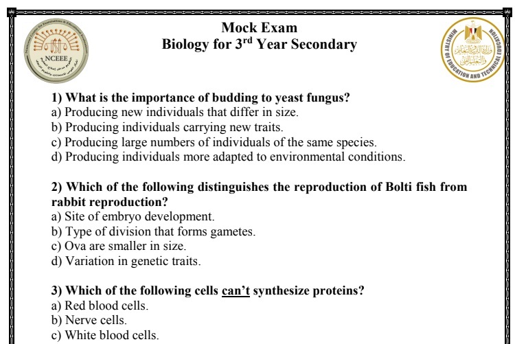النماذج الاسترشادية في الأحياء لامتحانات الثانوية العامة 2023