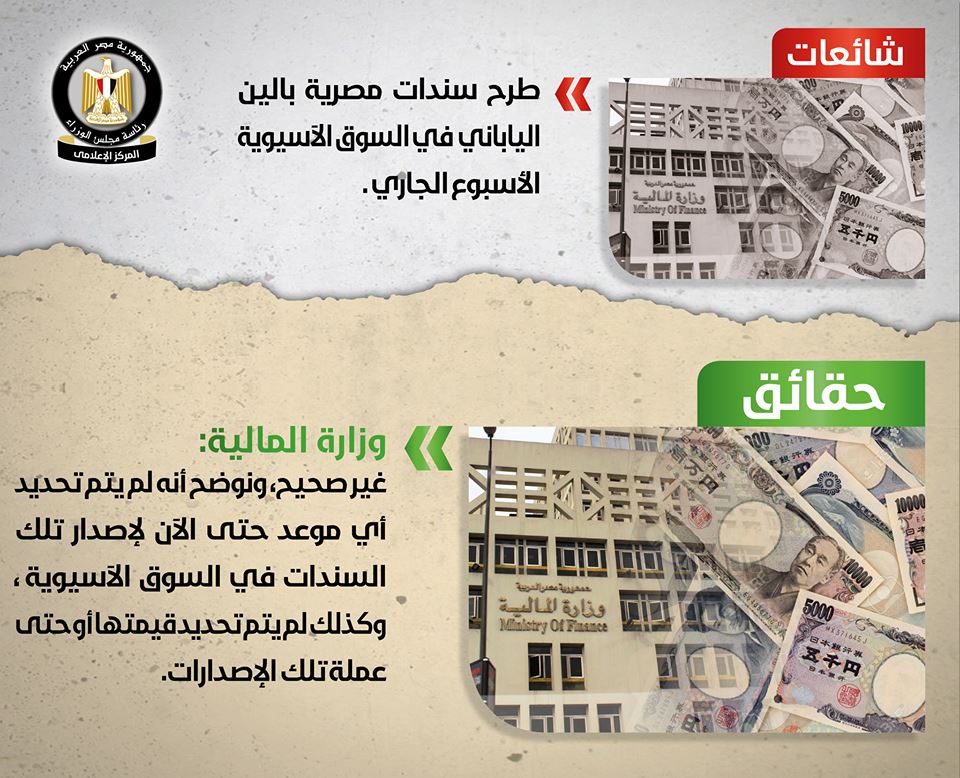 "الوزراء" تنفى طرح سندات مصرية بالين الياباني في السوق الآسيوية