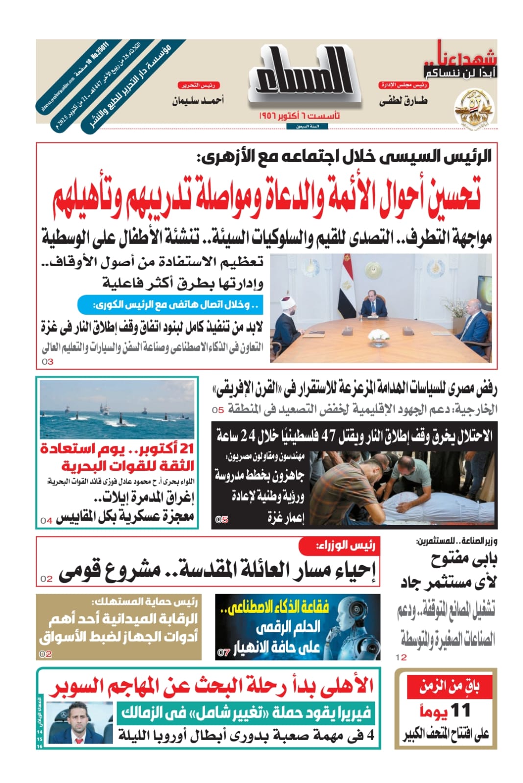 عدد المساء اليوم الاثنين 20 أكتوبر 2025