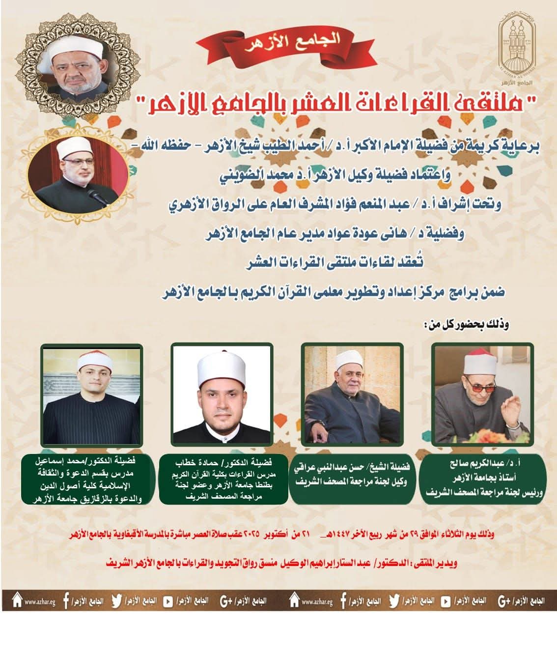 الجامع الأزهر يعقد ملتقى القراءات الثلاثة المتممة للعشر..اليوم