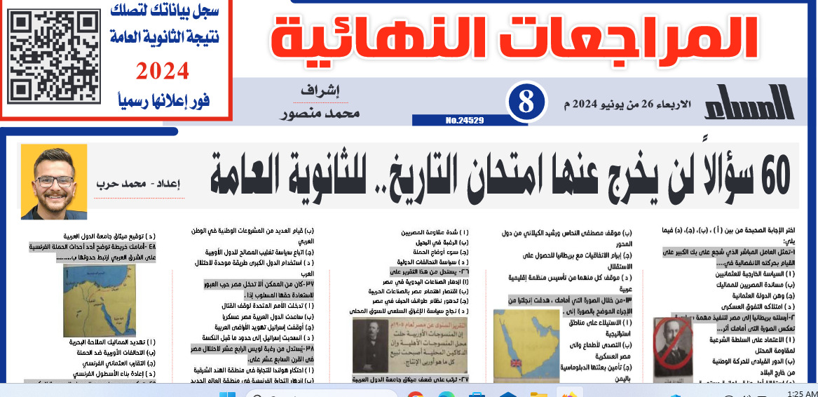 60سؤالا لن يخرج عنها امتحان التاريخ.. للثانوية العامة 2024