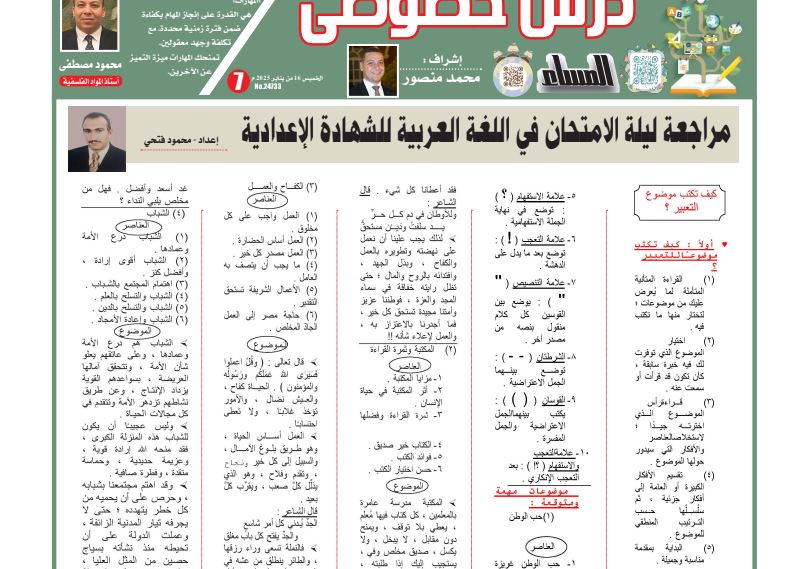 7 موضوعات تعبير متوقعة لن يخرج عنها امتحان اللغة العربية لـ الشهادة الاعدادية