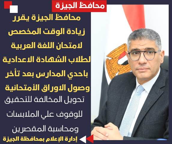 محافظ الجيزة يقرر زيادة الوقت المخصص لامتحان اللغة العربية