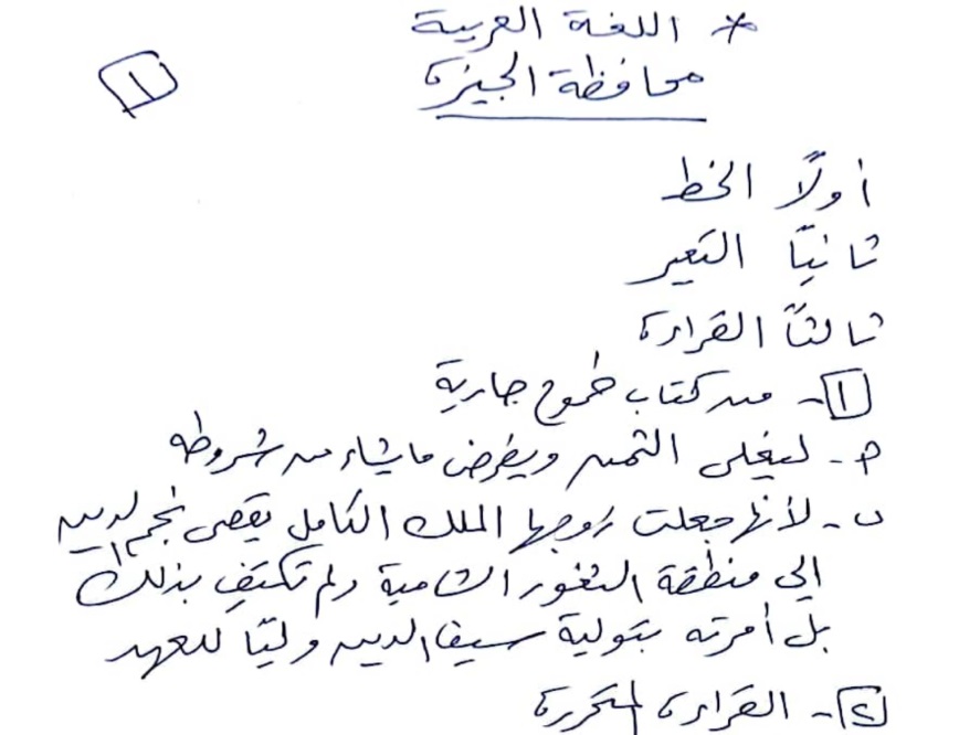 ننشر نموذج اجابة امتحان اللغة العربية للشهادة الإعدادية فى الجيزة