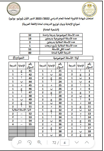 الإجابة النموذجية لامتحان اللغة العربية للثانوية العامة 2023