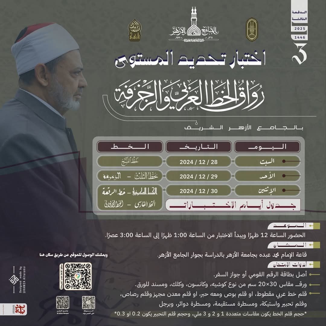 انطلاق اختبارات نهاية المستوى برواق الخط العربي بالجامع الأزهر