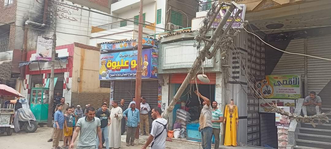 حموله زائده للنقل تتسبب فى سقوط عمود وانقطاع الكهرباء