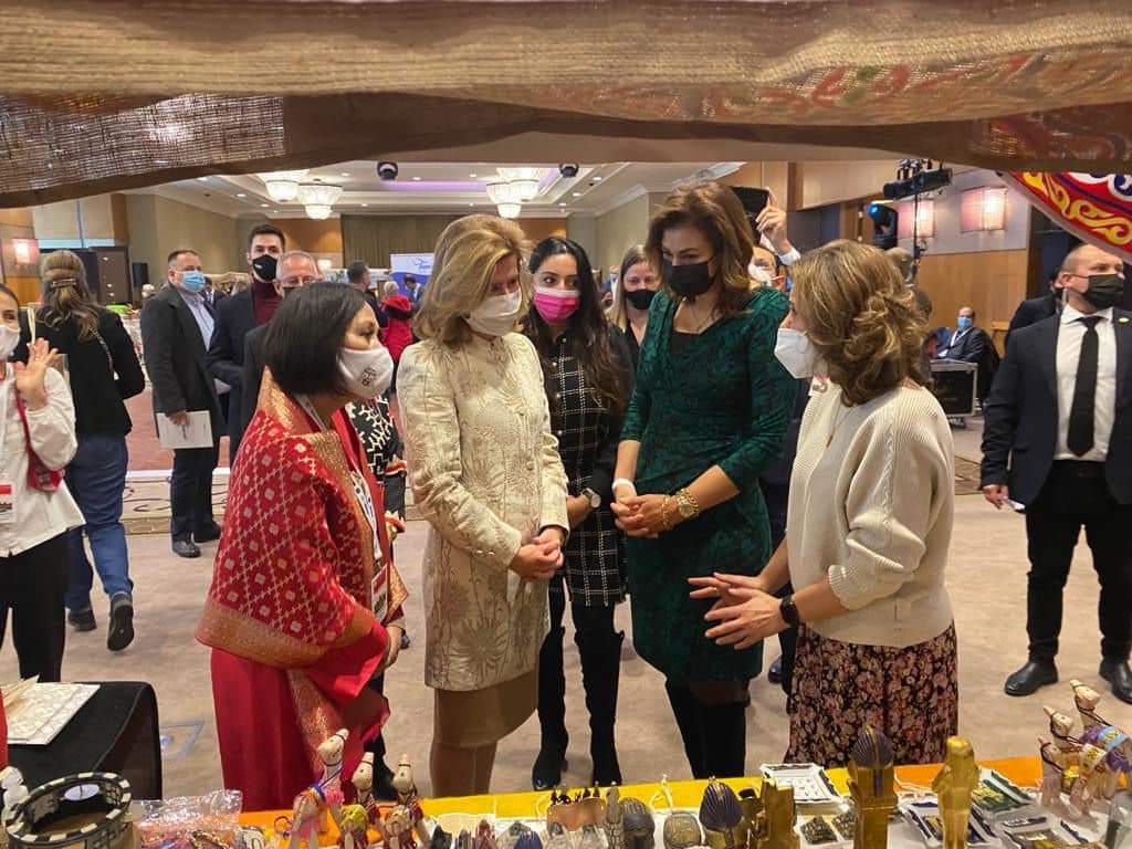 قرينة الرئيس تعرب عن سعادتها بزيارة معرض "البازار" للحرف اليدوية والتراثية