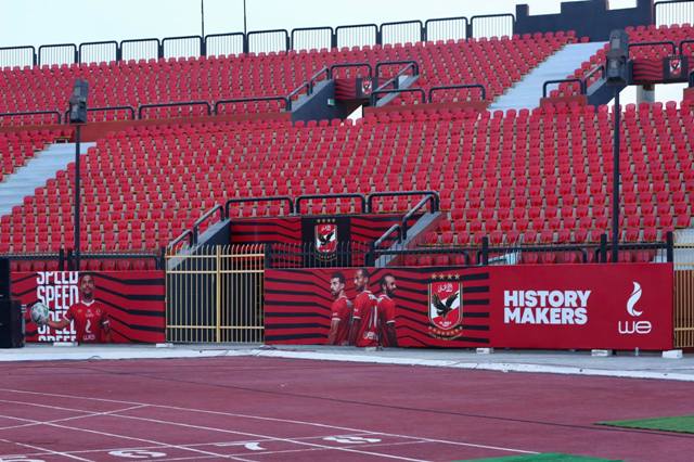 بالصور.. ستاد الأهلي يتزين باللون الأحمر واللاعبين قبل افتتاحه بشكل رسمي