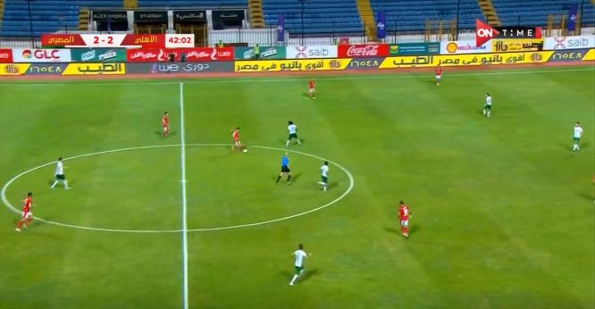 الاهلى يتقدم بثلاثة اهداف مقابل هدفين فى شباك المصرى بالشوط الاول