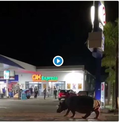 فرس نهر يقتحم محطة وقود بجنوب إفريقيا.. فيديو