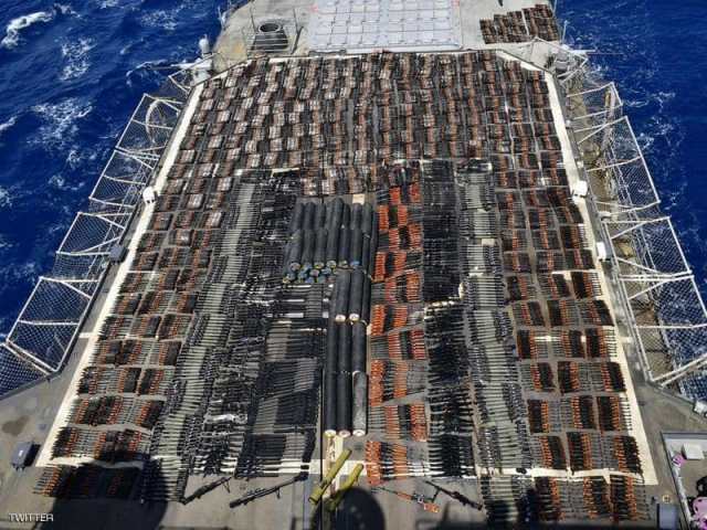 الأسطول الأمريكي الخامس يصادر شحنة أسلحة مجهولة ببحر العرب.. فيديو