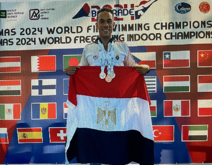 محمد طارق يحقق إنجازاً رياضياً فى بطولة العالم للسباحة بالزعانف