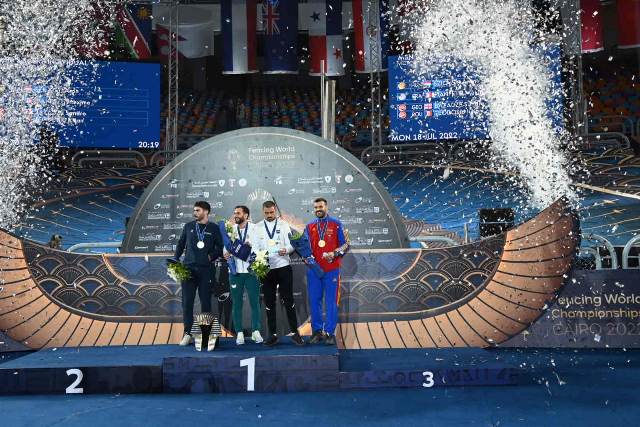 المجري أرون سيزيلاجي يتوج بذهبية سلاح السيف ببطولة العالم للمبارزة باستاد القاهرة