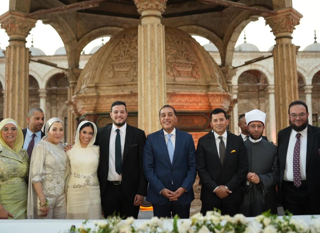 كبير الياوران برئاسة الجمهورية يحتفل بعقد قران نجله بمسجد المشير.. صور
