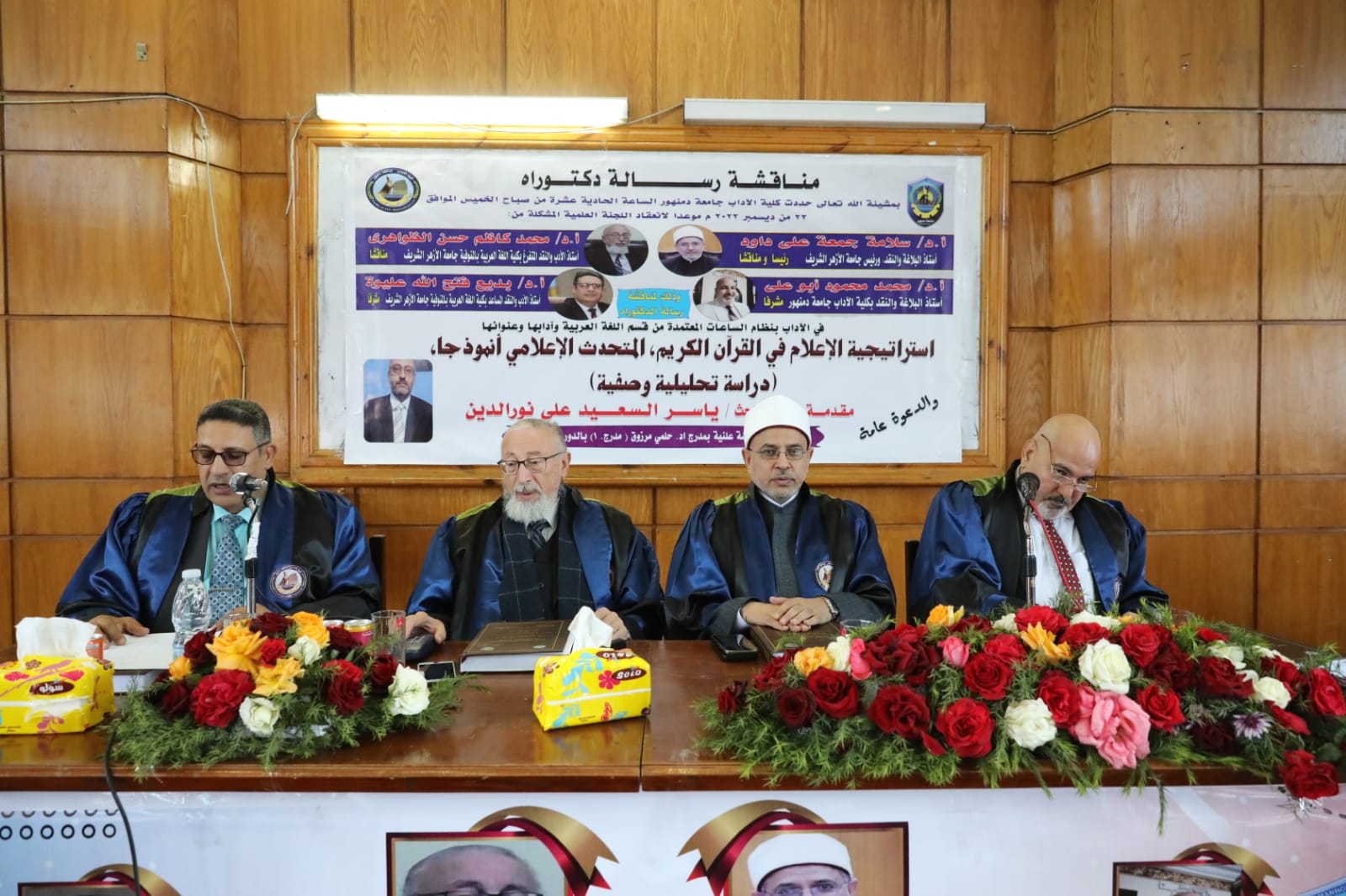 رئيس جامعة الأزهر يناقش رسالة دكتوراه بكلية الآداب جامعة دمنهور