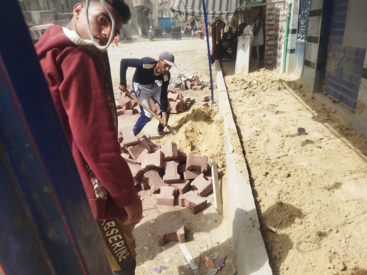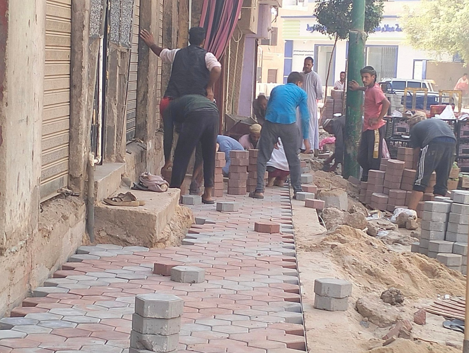 رصف الشوارع وتركيب البلدورات بحي شرق أسيوط.صور
