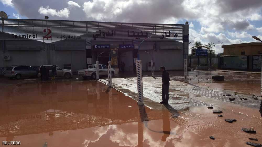 مياه الأمطار تشل بنغازي وتحاصر مطار بنينا الدولي