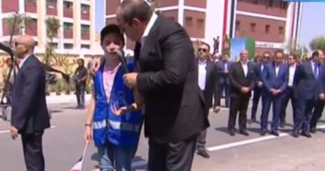 الرئيس السيسى يقبل رأس طفلة تبكى خلال لقائه ببنى سويف