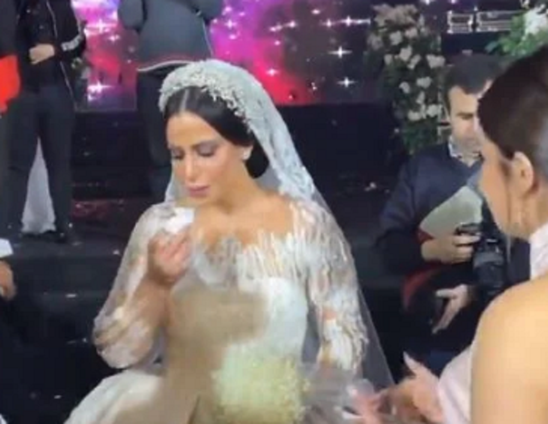ابنة ماجد المصرى تبكى فى حفل زفافها