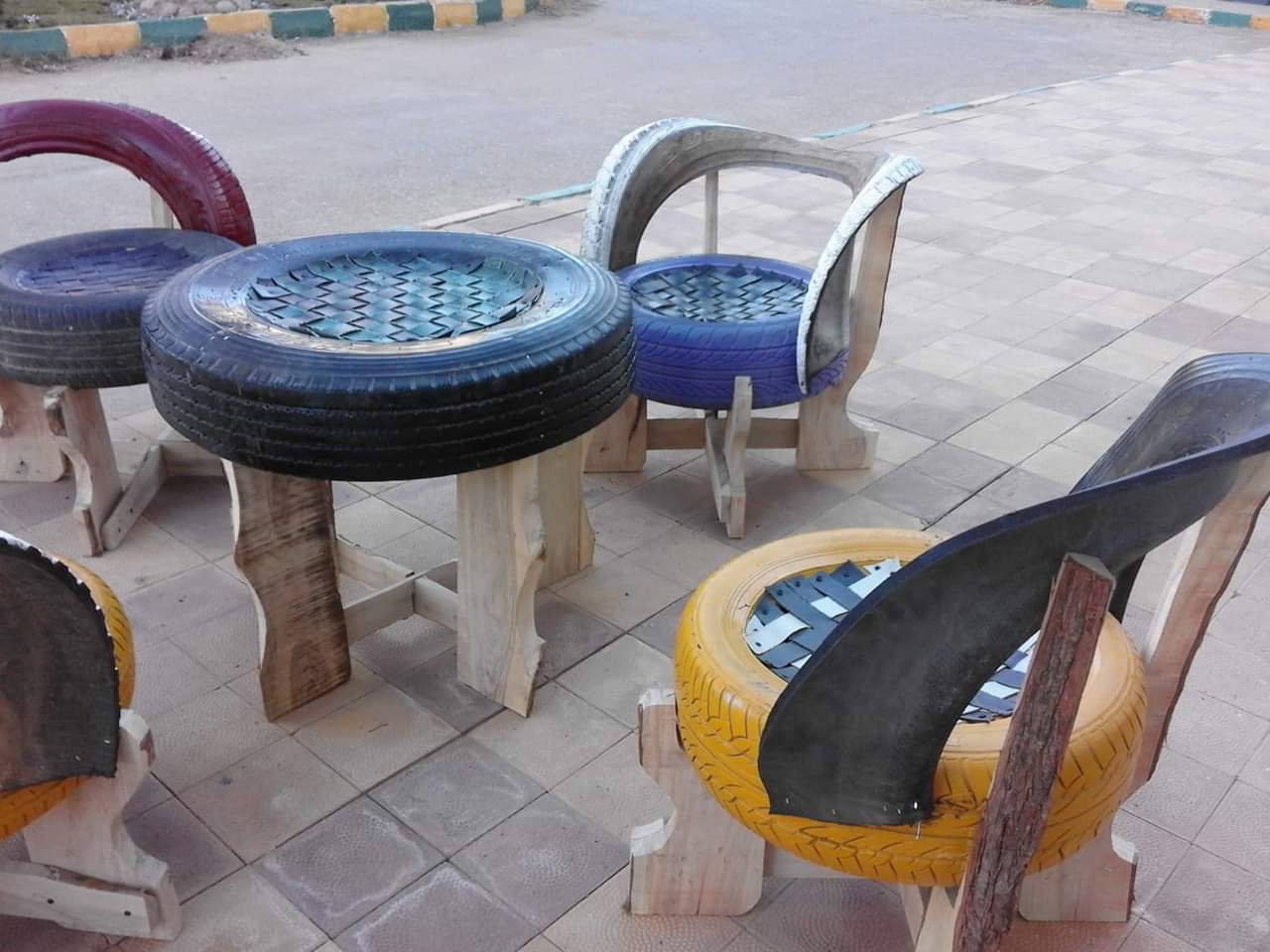 مخلفات البيئة.. مقاعد وتربيزات بحدائق الواحات..صور