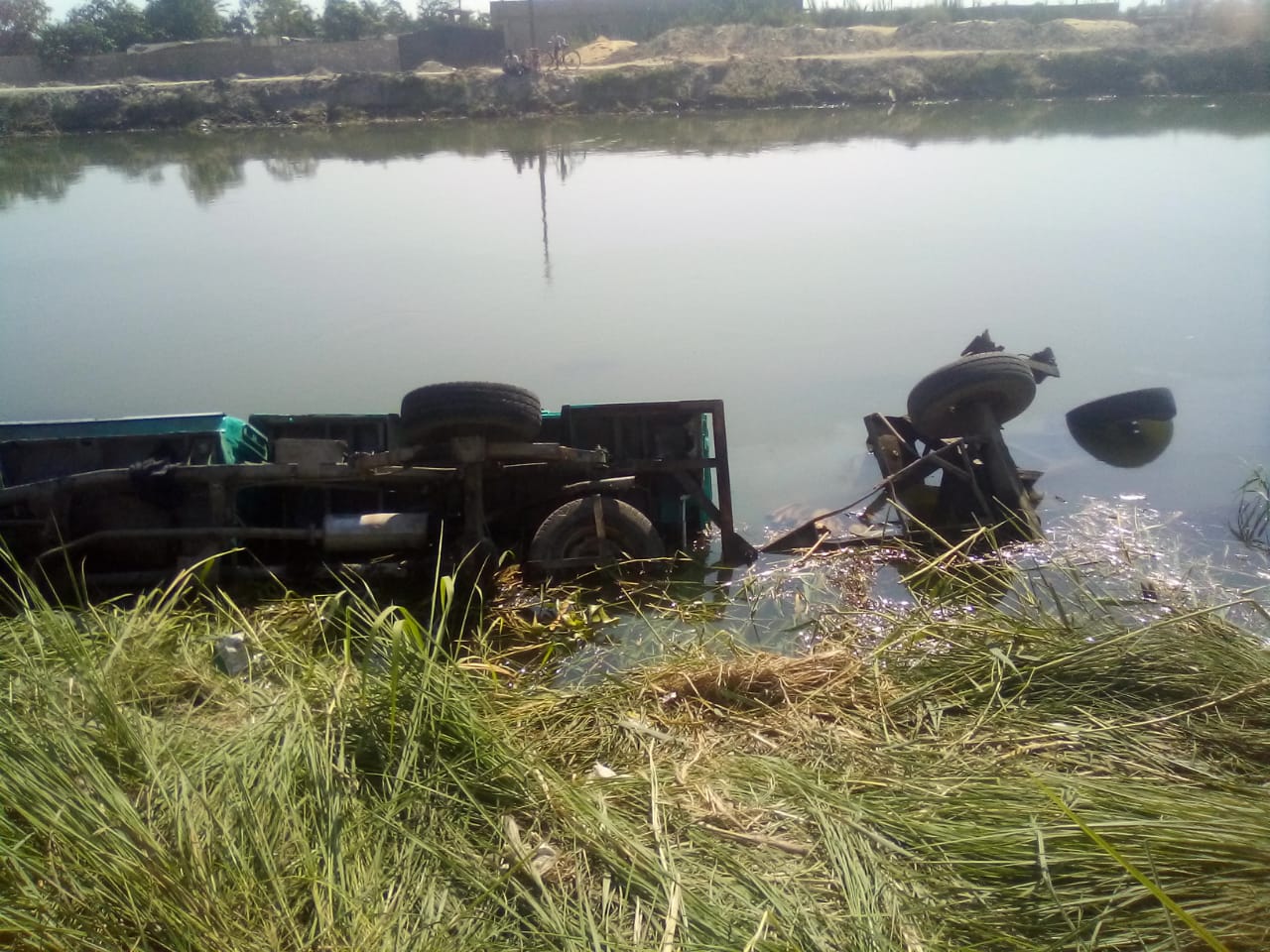 سقوط سيارة مصحوبة بخلاطة أسمنت في ترعة بورسعيد بالإسماعيلية.صور