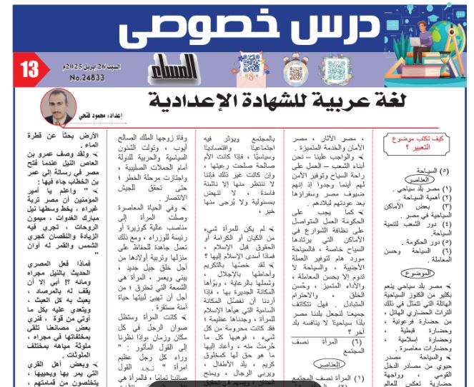 مراجعة شاملة على التعبير والقصة والنحو للشهادة الإعدادية