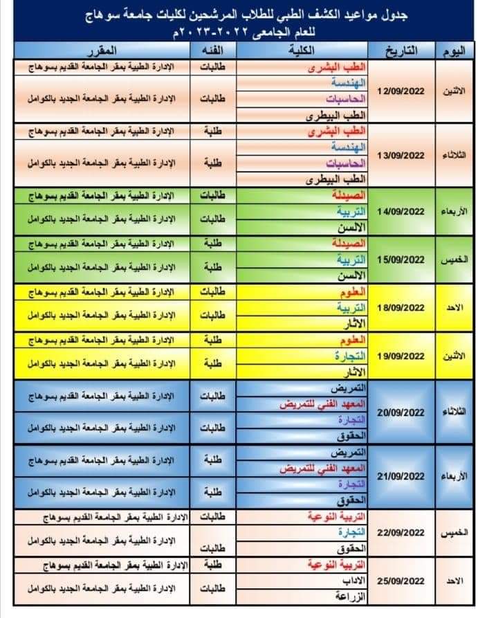 الاثنين القادم .. جامعة سوهاج تبدأ توقيع الكشف الطبي على الطلاب الجدد