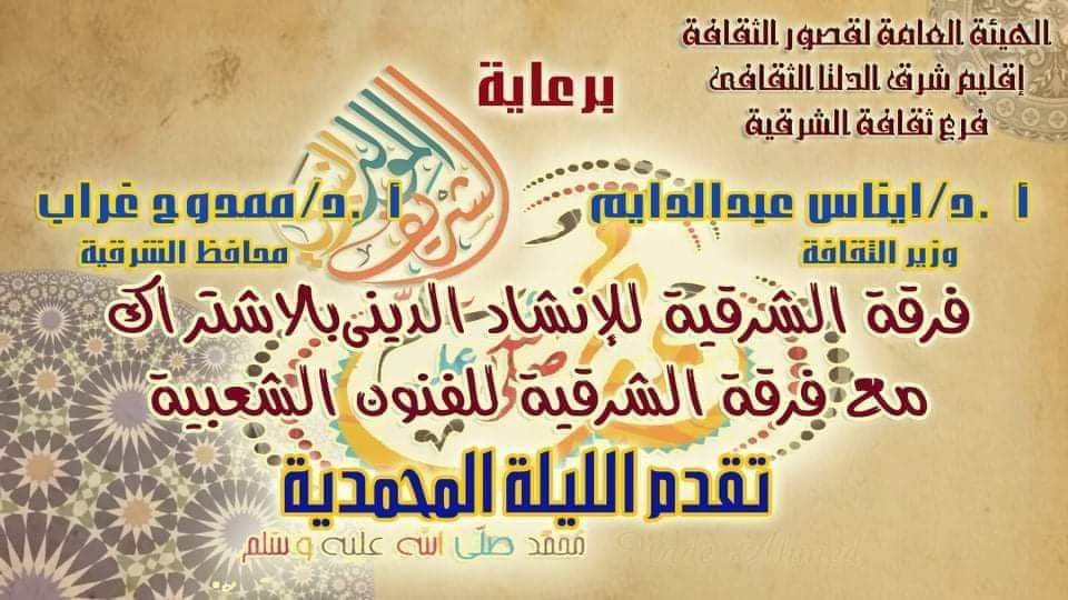 محافظ الشرقية يحضر احتفالية الليلة المحمدية بثقافة الشرقية ..
