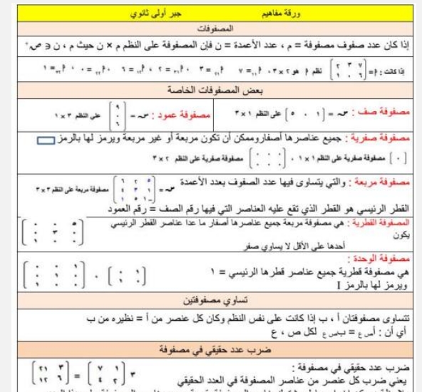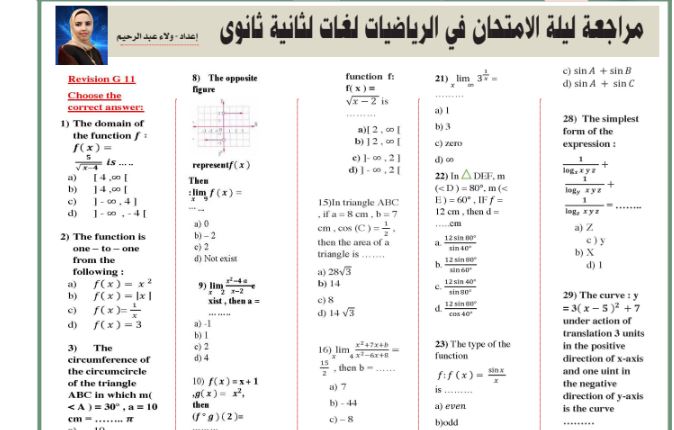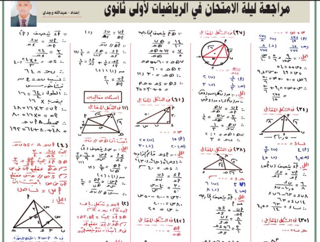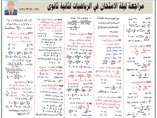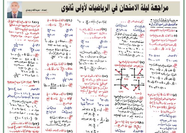 مراجعة ليلة الامتحان في الجبر وحساب المثلثات للصف الاول الثانوي
