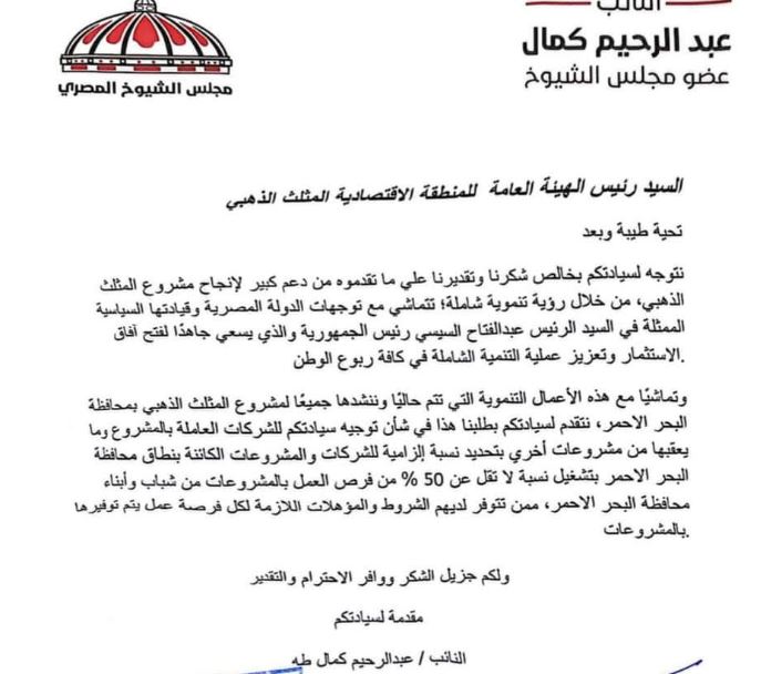 الموافقة علي تعيين 50% من أبناء البحر الاحمر بمشروع المثلث الذهبي