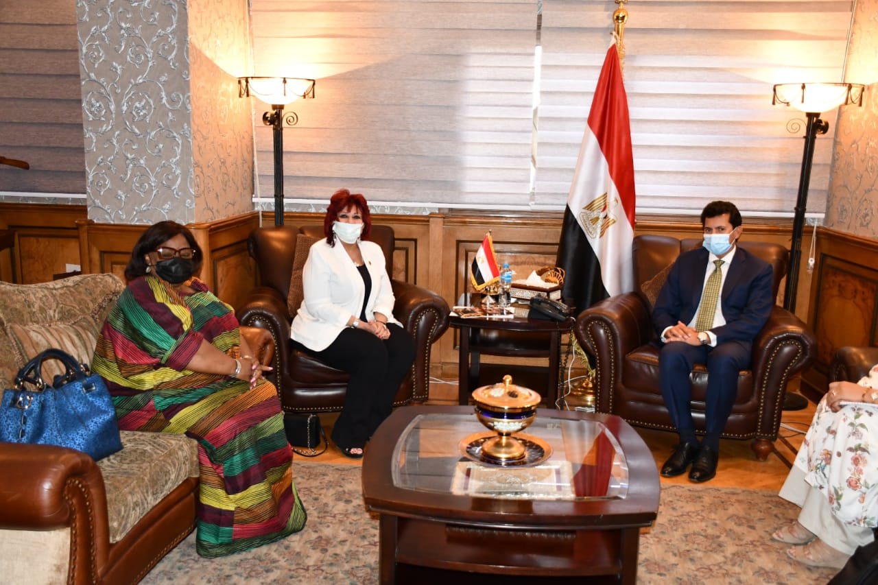 وزير الشباب يكرم رئيس اتحاد المستثمرات العرب لدورها في المسؤلية المجتمعية