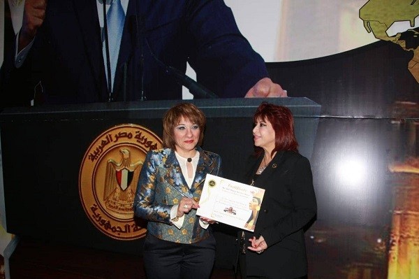 سحر نصر تتسلم درع تكريم الرئيس من المستثمرات العرب