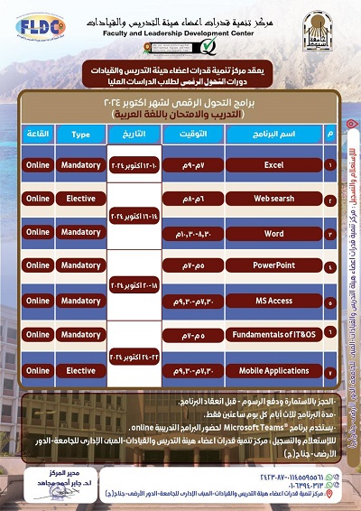التسجيل في دورات التحول الرقمي لطلاب الدراسات العليا بجامعة اسيوط