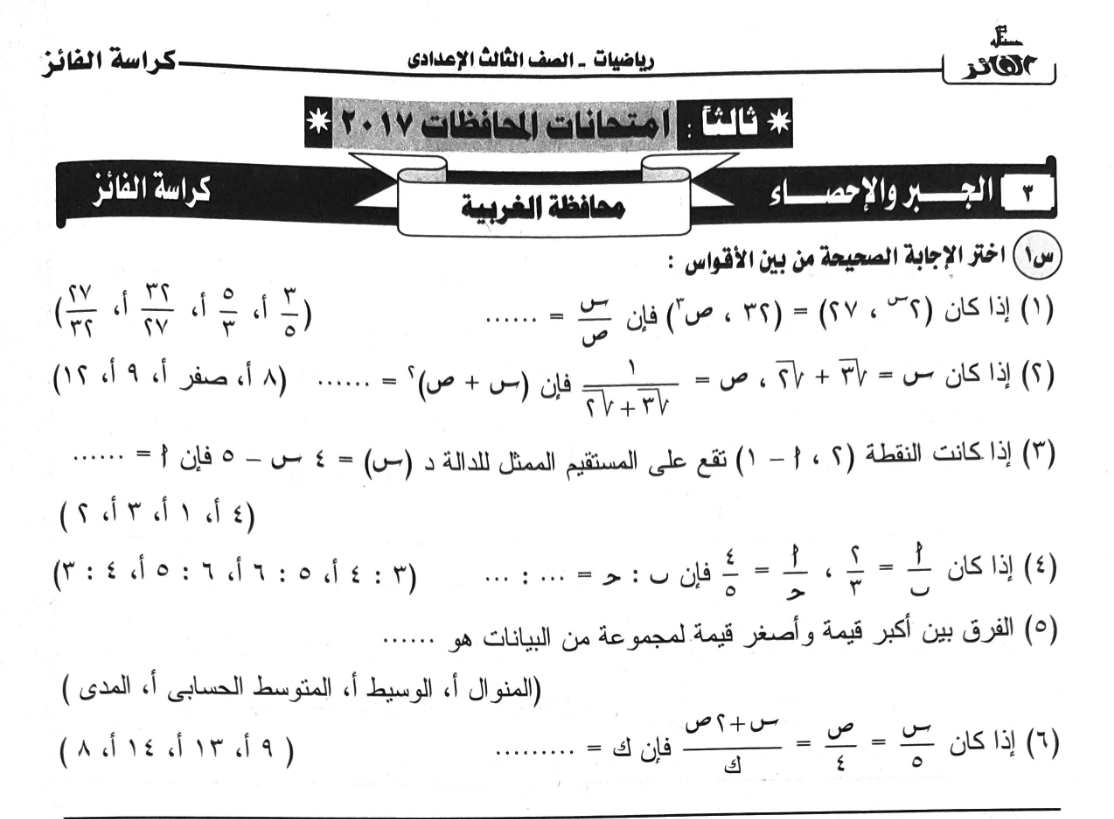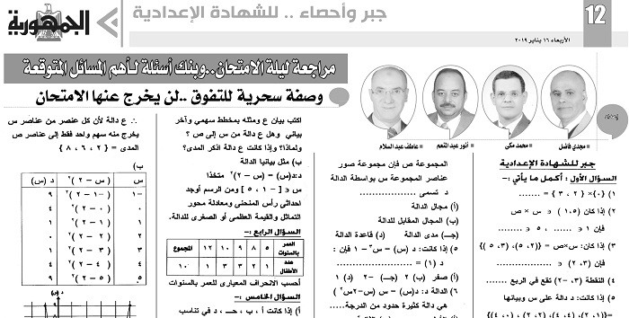 جبر واحصاء للشهادة الاعدادية
