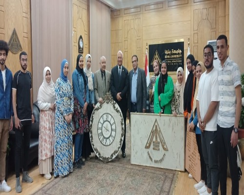 "طلاب نوعية" يهدون رئيس جامعة بنها جدارية وساعة حائط