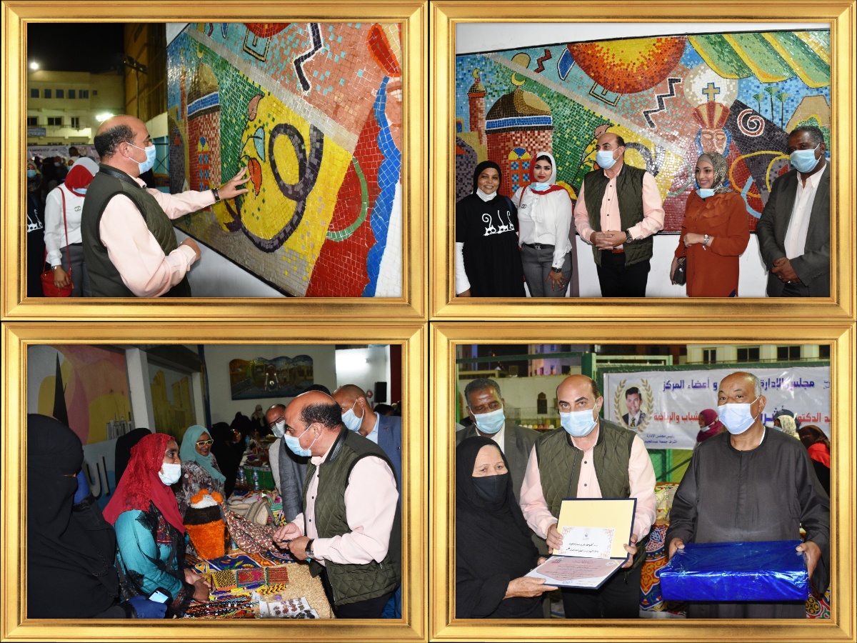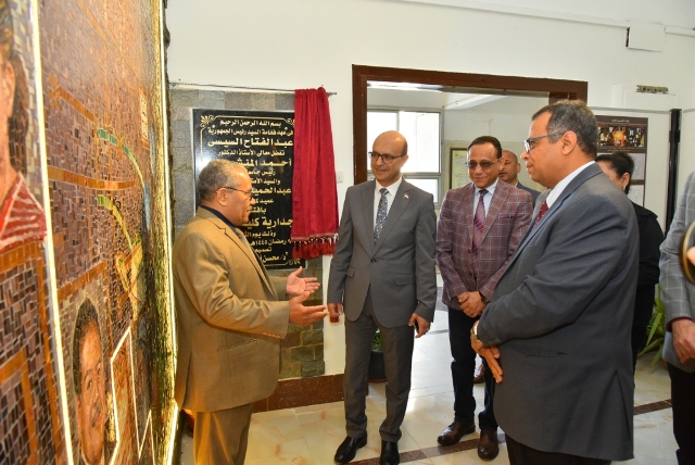 رئيس جامعة أسيوط يفتتح أول جدارية برمال البحبيح الملونة