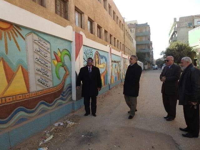 وكيل تعليم المنوفية يشيد باللوحات الجدارية على أسوار المدارس بقويسنا
