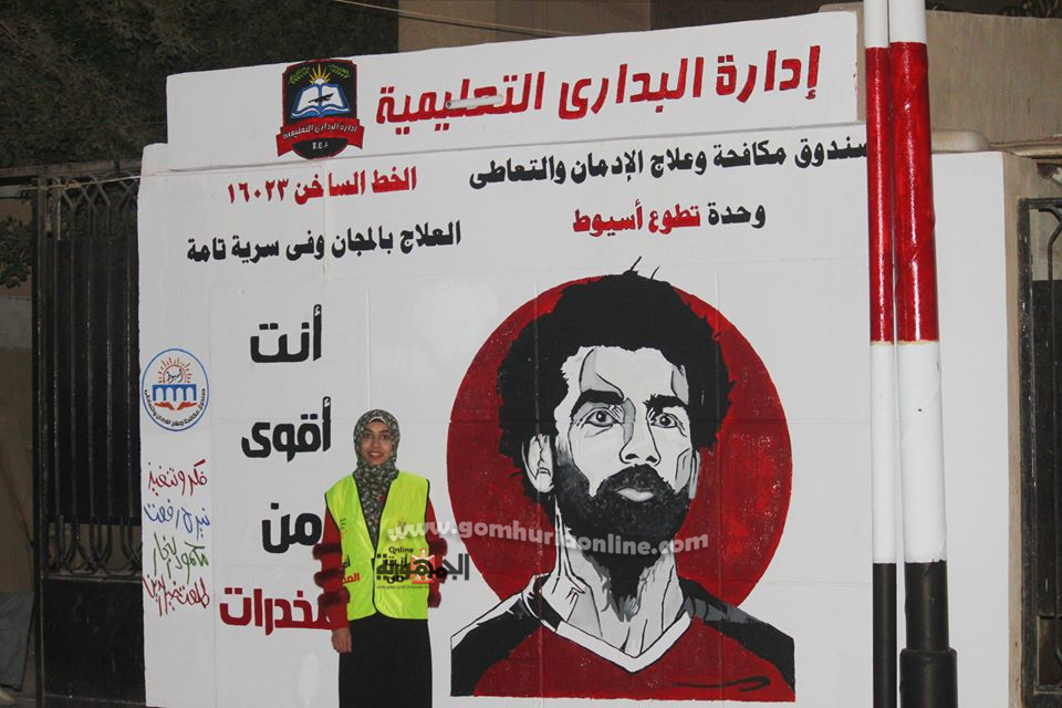 فتاة تكافح المخدرات باللوحات الجدارية بجنوب أسيوط .. صور