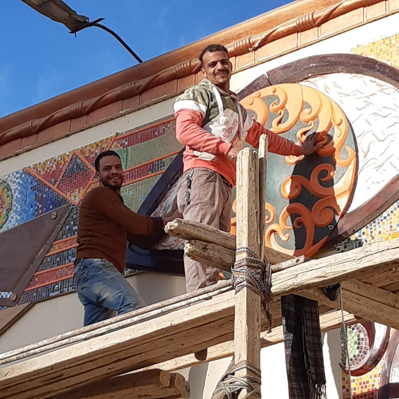 تنفيذ جدارية بلمسات فنان الواحات التراثية بالوادى الجديد