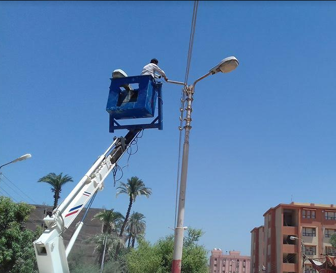 جهود مكثفة لرفع كفاءة الإنارة العامة بمدينة جهينة بسوهاج ...صور